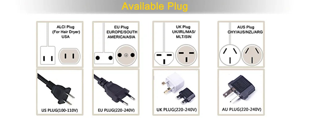 Voltage : US-110V,EU/UK/AU-220-240V